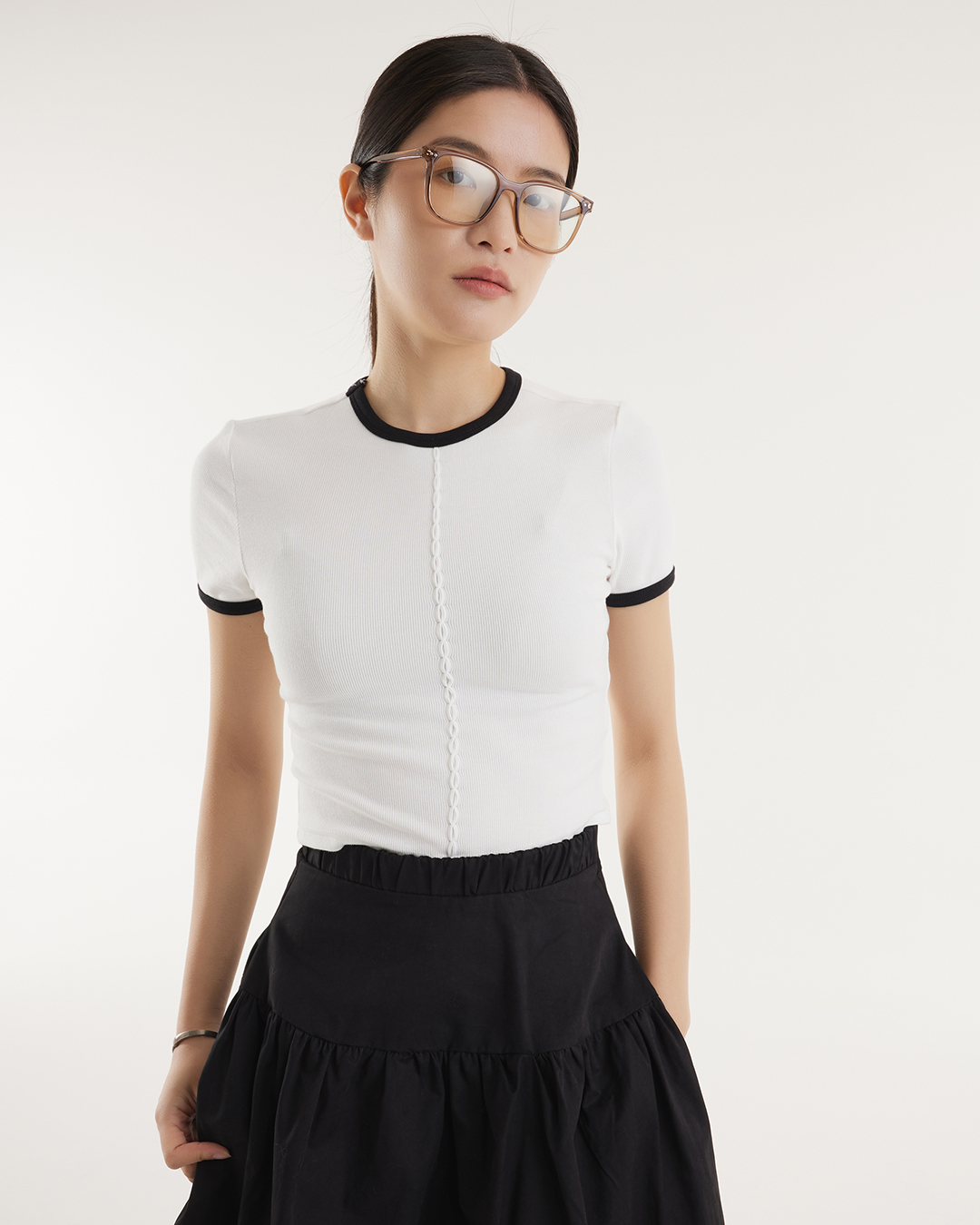 Color-blocking, Form-fitting Short-sleeved T-shirt
