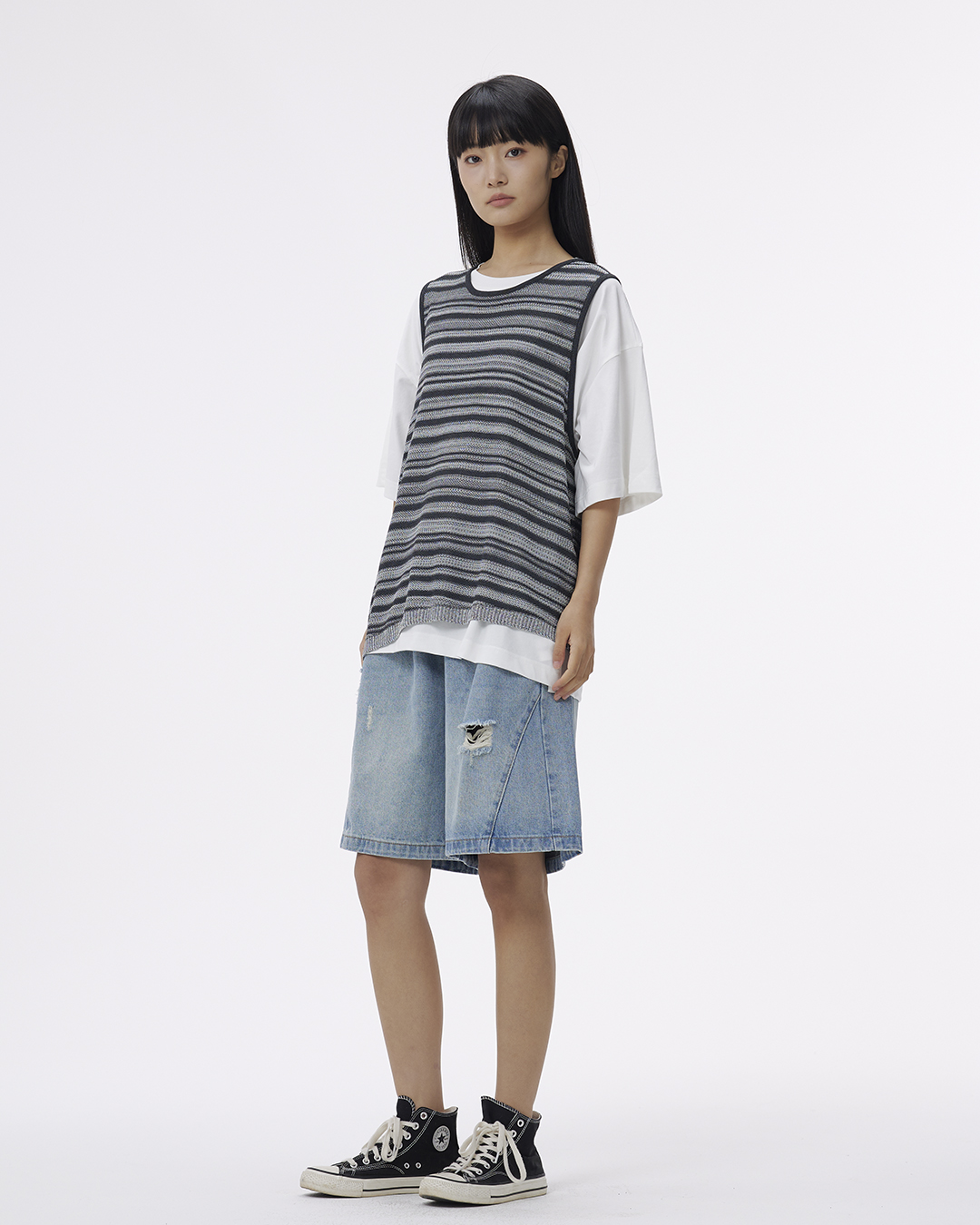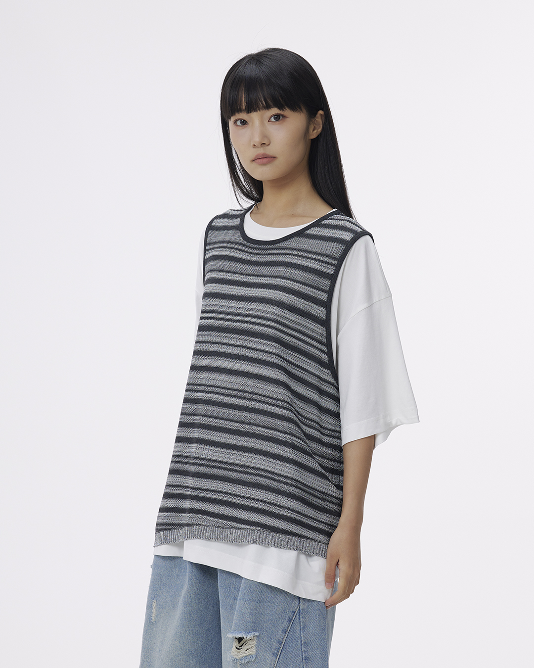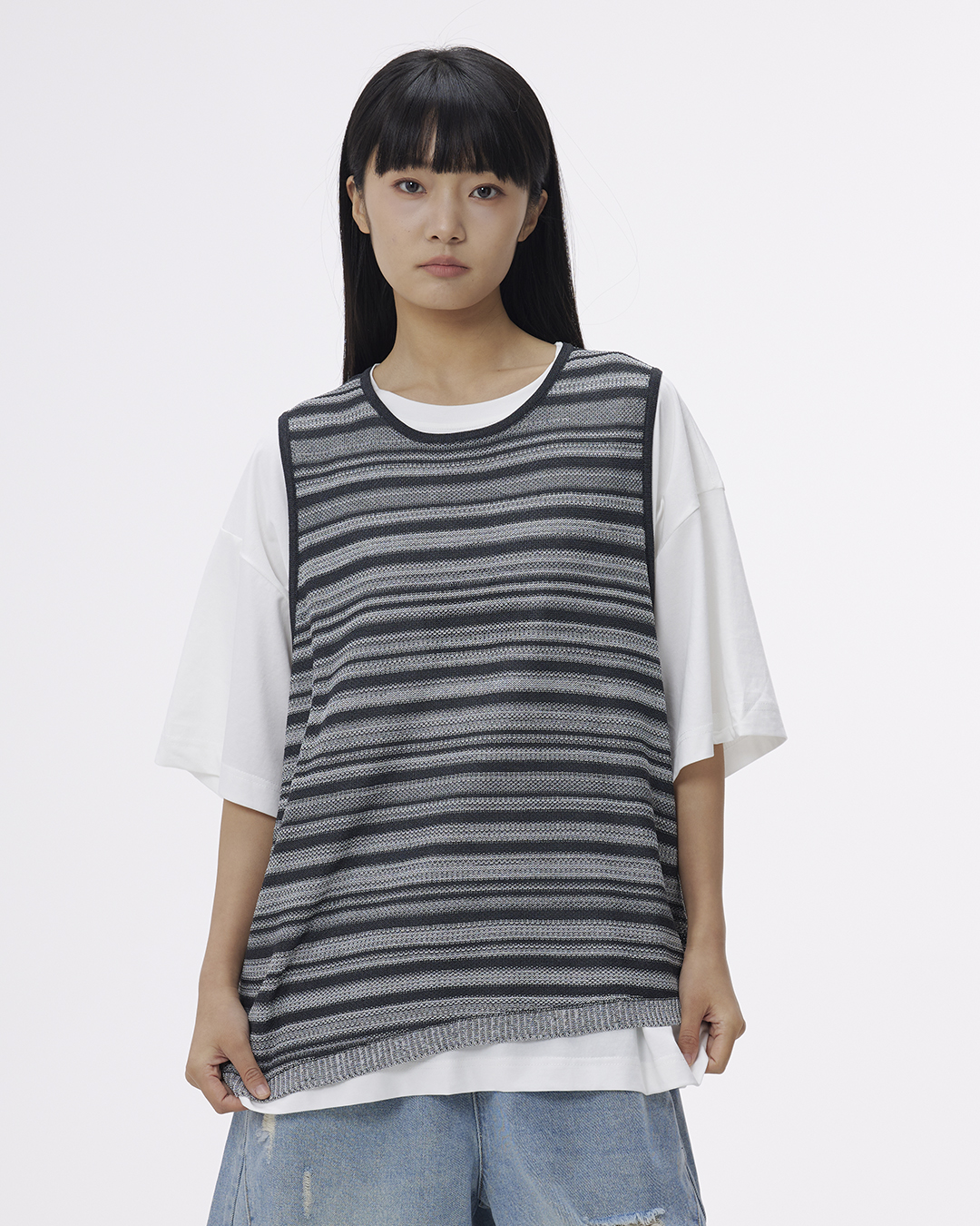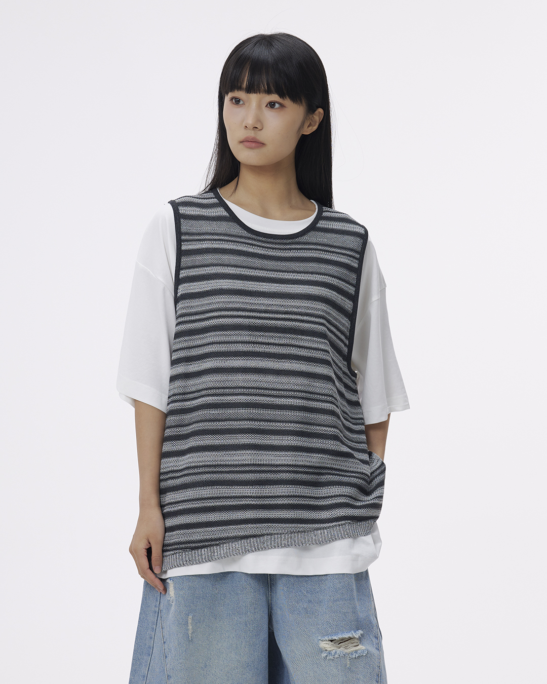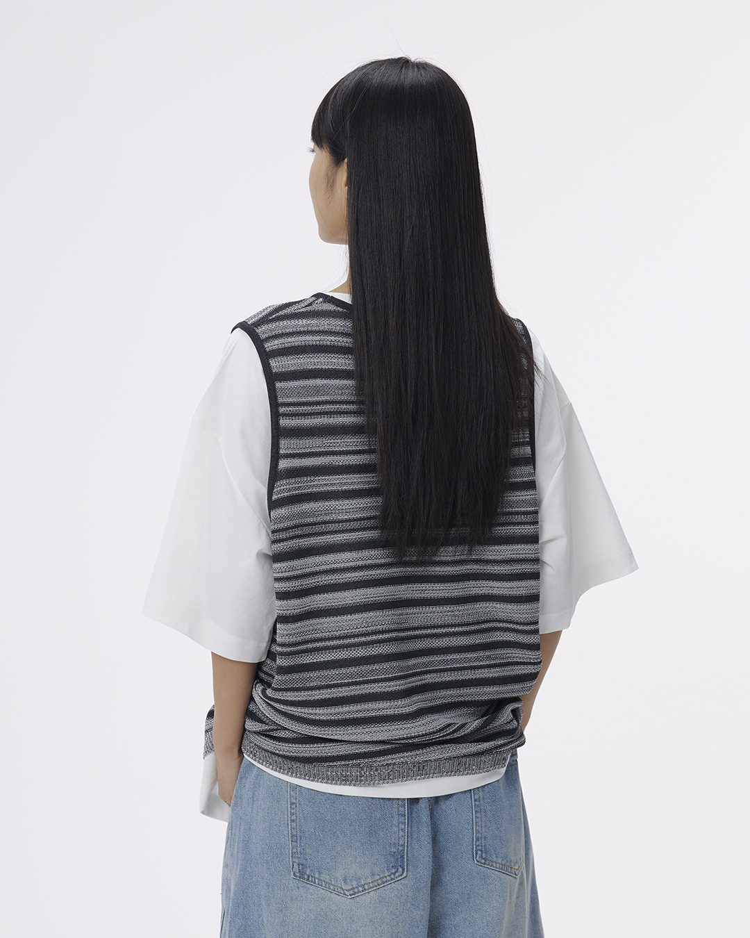 Hollowed-out Vacation-style Knitted Striped Waistcoat