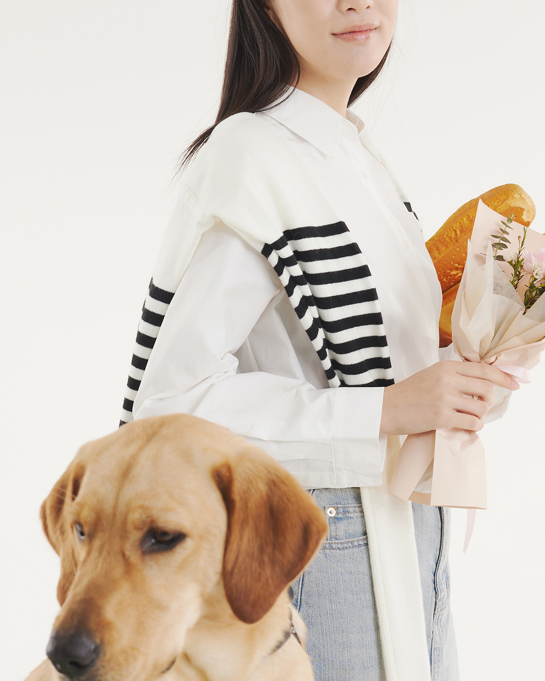 A Simple Round-neck, Color-blocking Striped Knitted Sweater